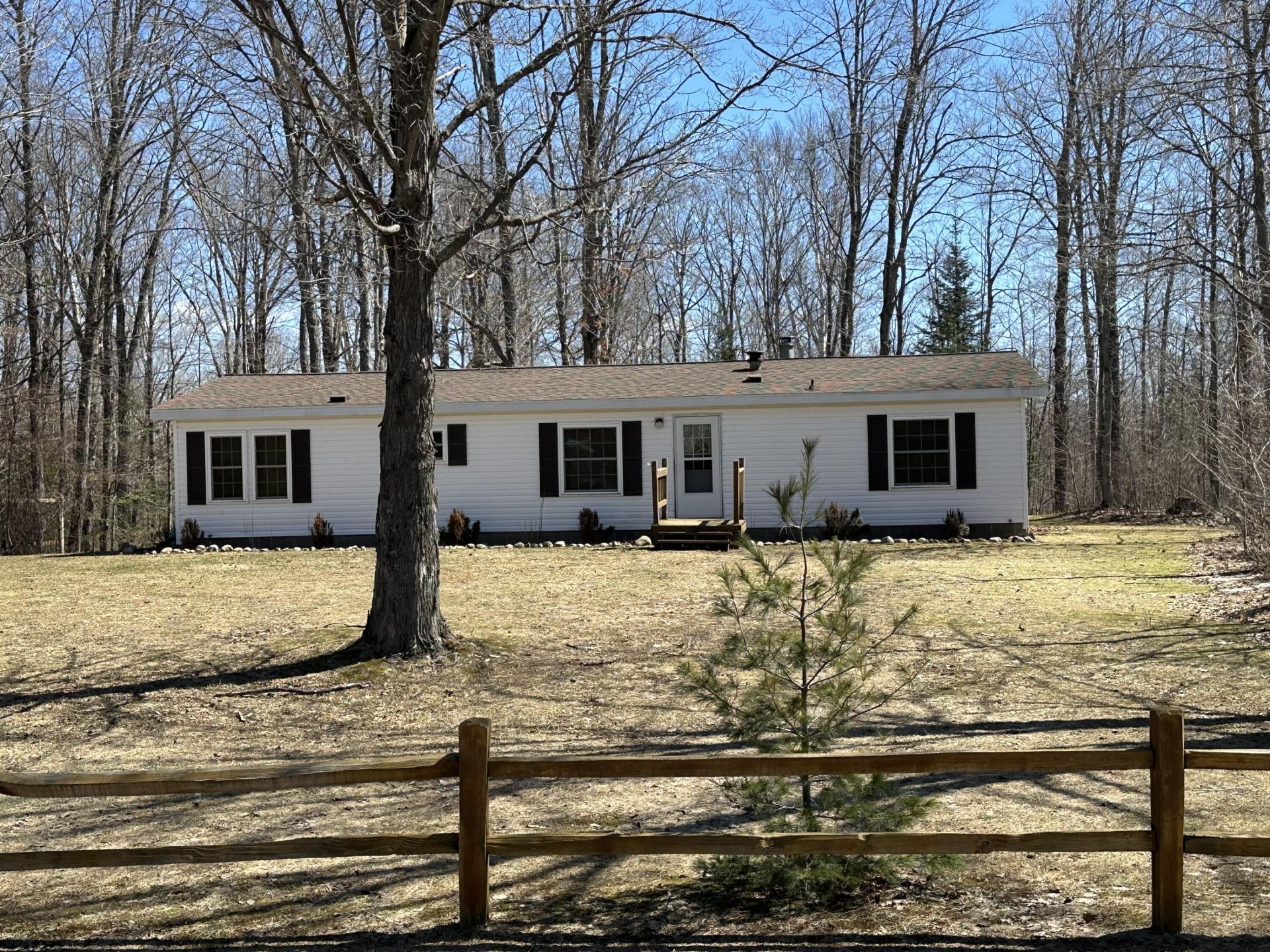 Beautiful country home in the hardwoods at an affordable price. This home is well maintained and move in ready! Two acres of sandy ground with large maple trees and a large back deck to enjoy the wildlife. A cozy woodstove is nice for winter evenings and the in-between seasons. Great location just a mile from the public boat launch on the St. Mary's river, convenience store and restaurants nearby!